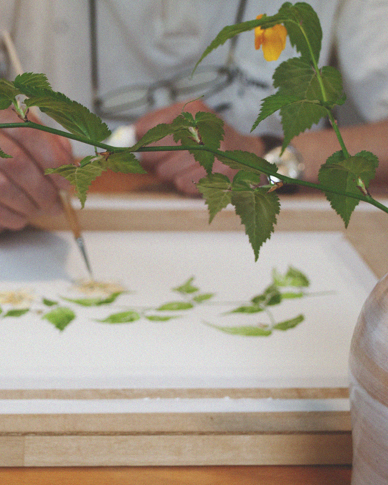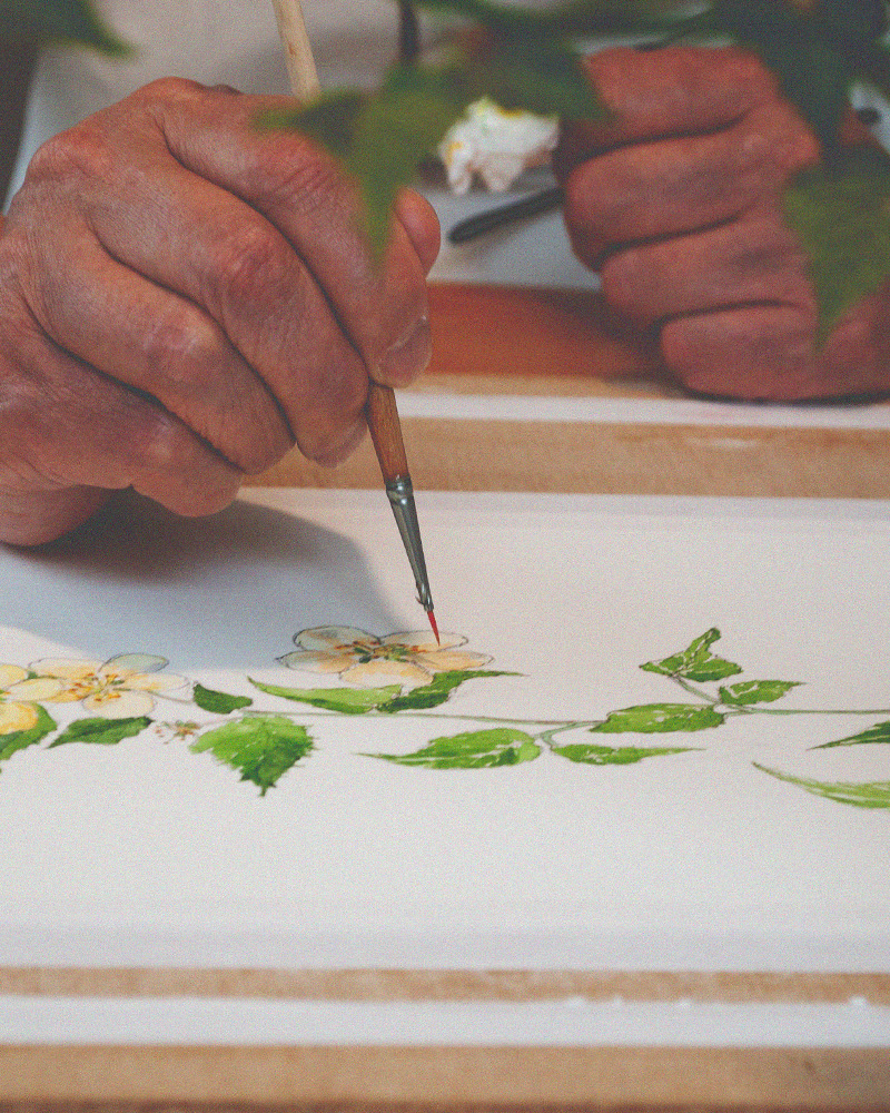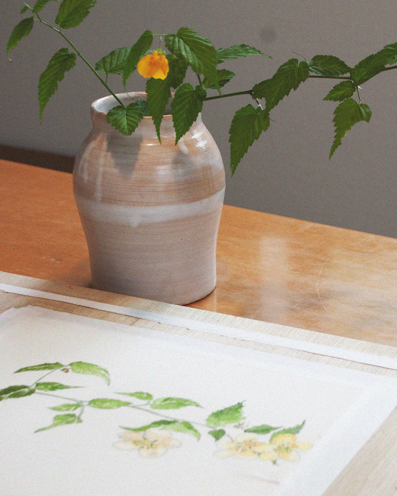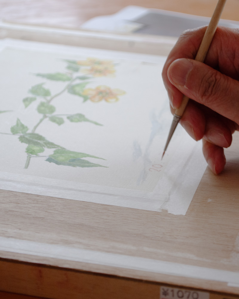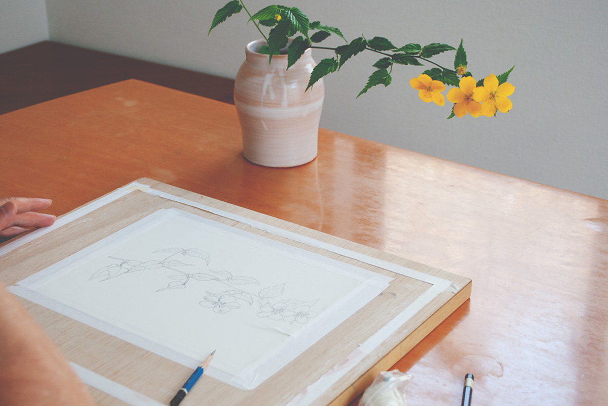 本日は「ヤマブキ」を描いていただきました。鉛筆で下絵を描きました。