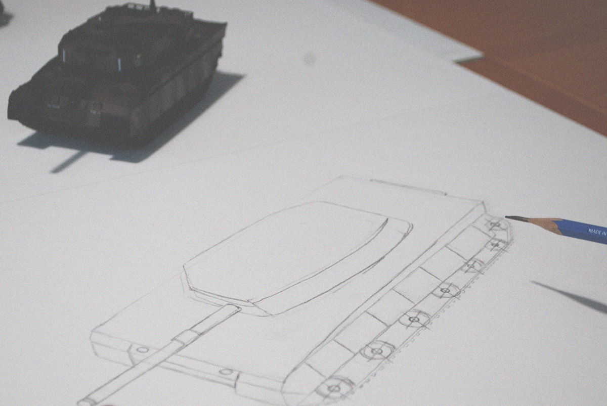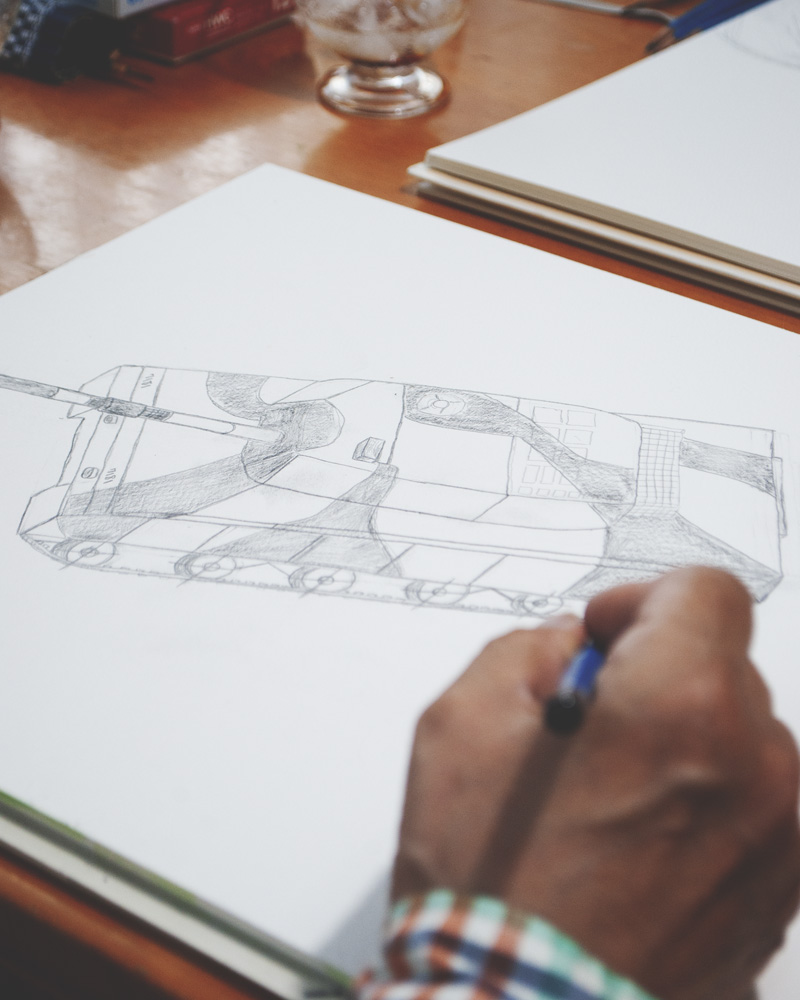 ミニチュアの戦車を描いていただきました。パースの取り方が素敵です。