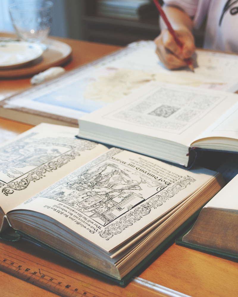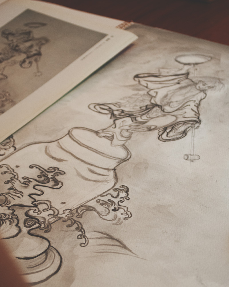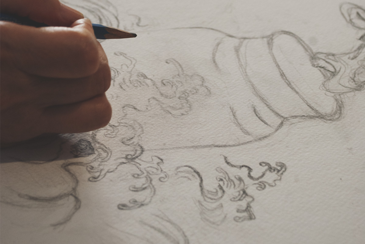 西洋の装飾を参考に、楽しい図案を制作しました。