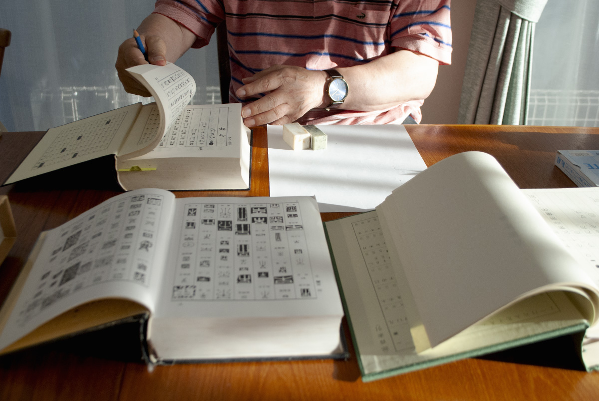 篆刻を始めました。生徒さんのお名前の由来や語源を調べていきます。
