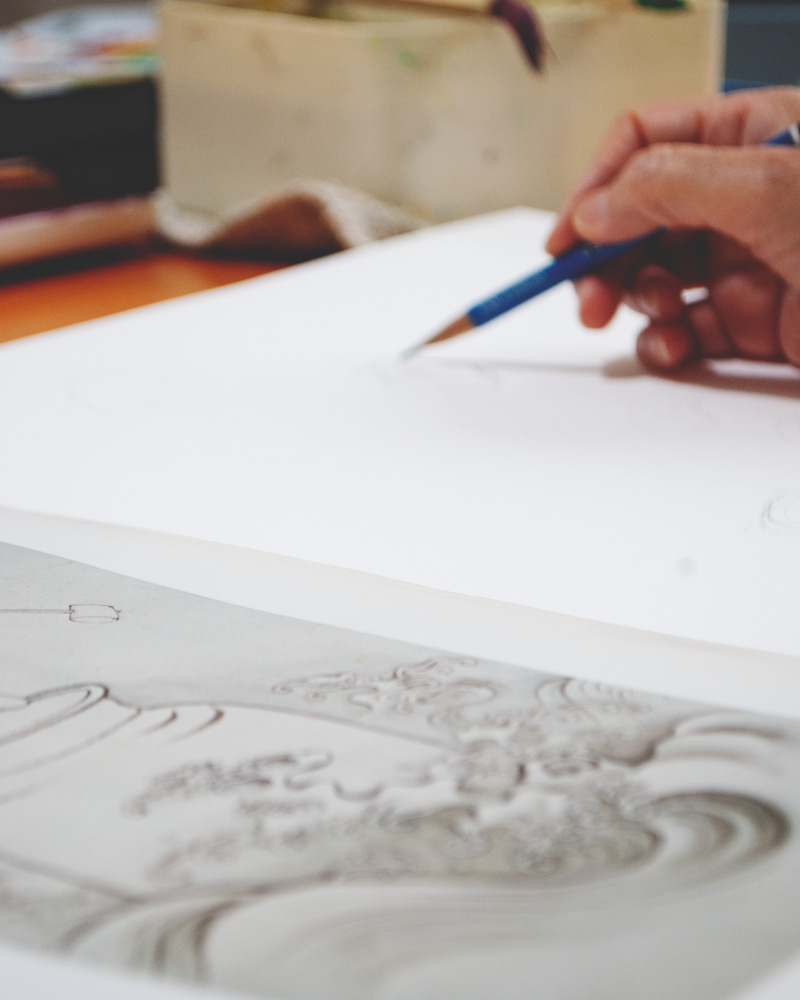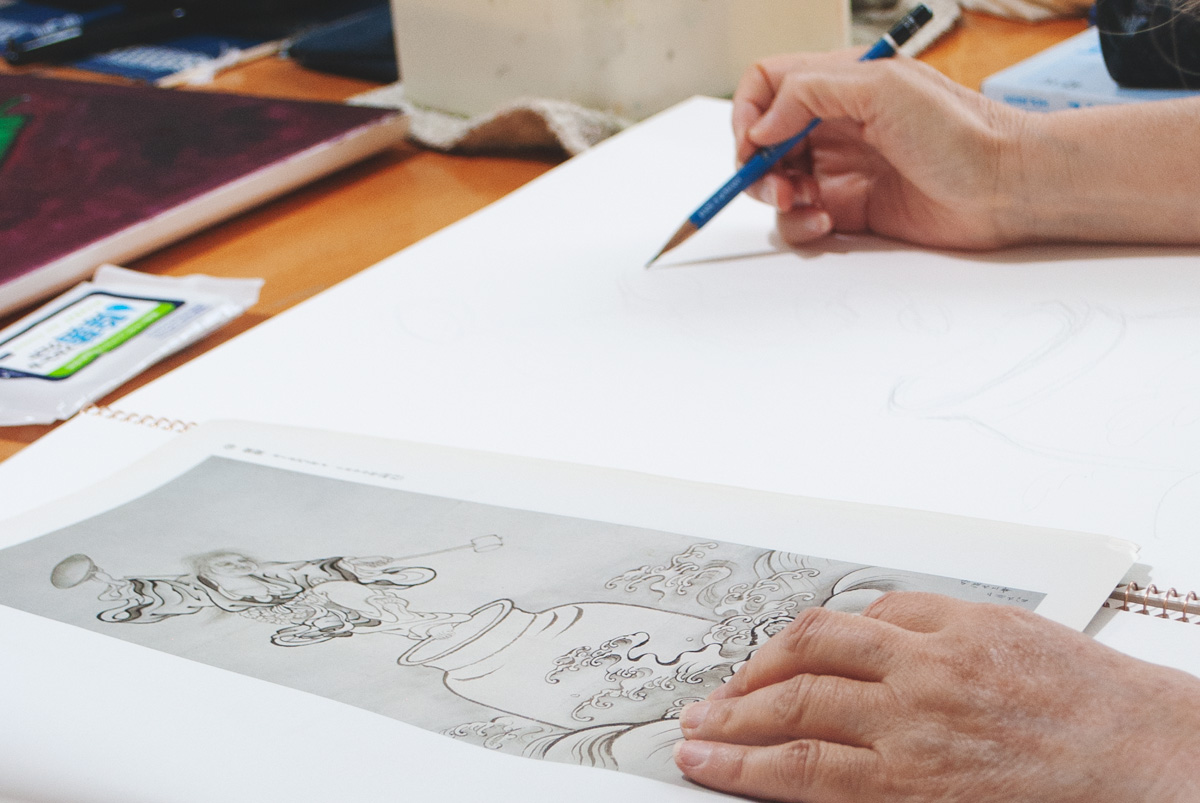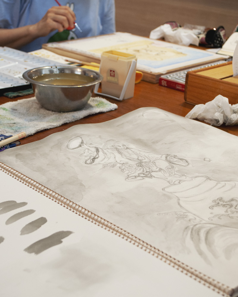 日本画「猩々」の模写を書き進めています。日本画特有の波の表現が素敵です。
