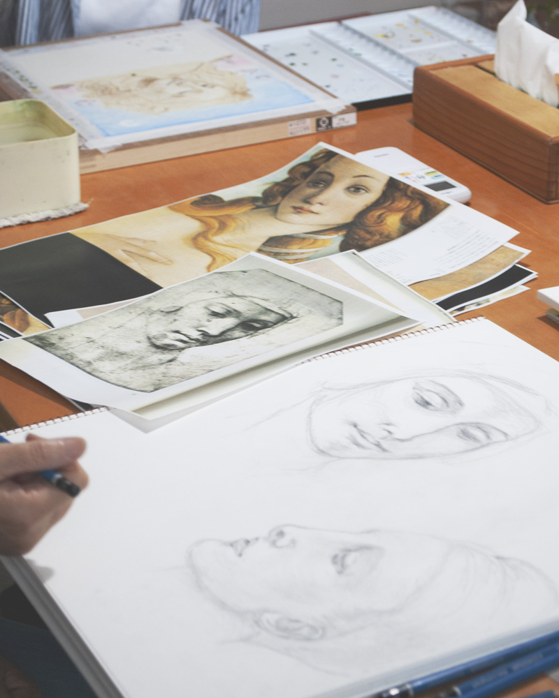 BENIYA」時代からの繋がりです。それぞれ美術作品の模写や水彩画、鉛筆でのスケッチをしていただきました。