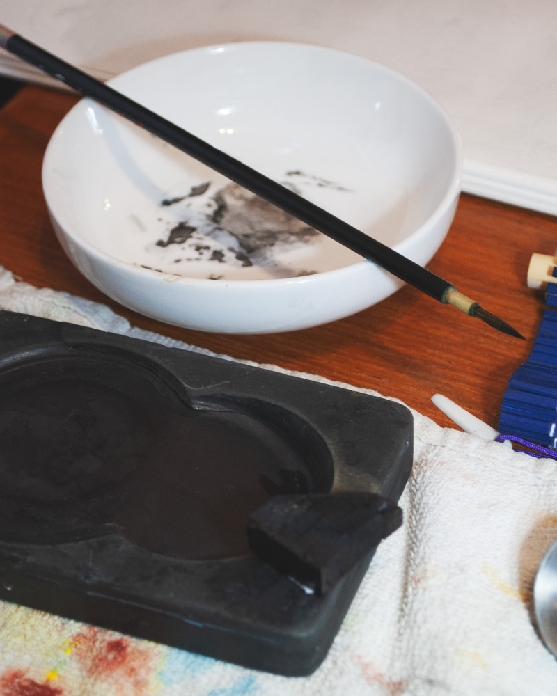 みなさん集まってのお教室でした。篆刻、模写、水彩などを制作しました。